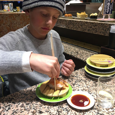 Sushi. We did not eat at any Michelin star restaurants while traveling, though I am sure you would be happy if you did; however, for me, the quality of all of the food was just so good that I didn't feel the need to go to that expense- especially while traveling with kids. We found amazing sushi in conveyor belt restaurants (huge lines of locals let me know it wasn't just for tourists with kids) and this place is also delicious if you want the whole experience, Sushi Sho, in Shinjuku.